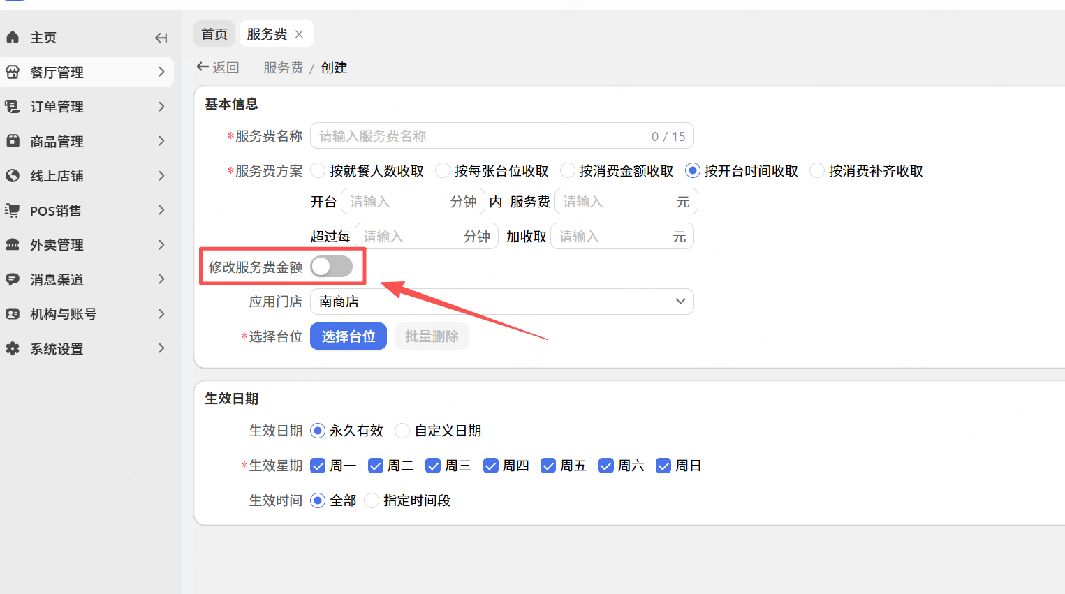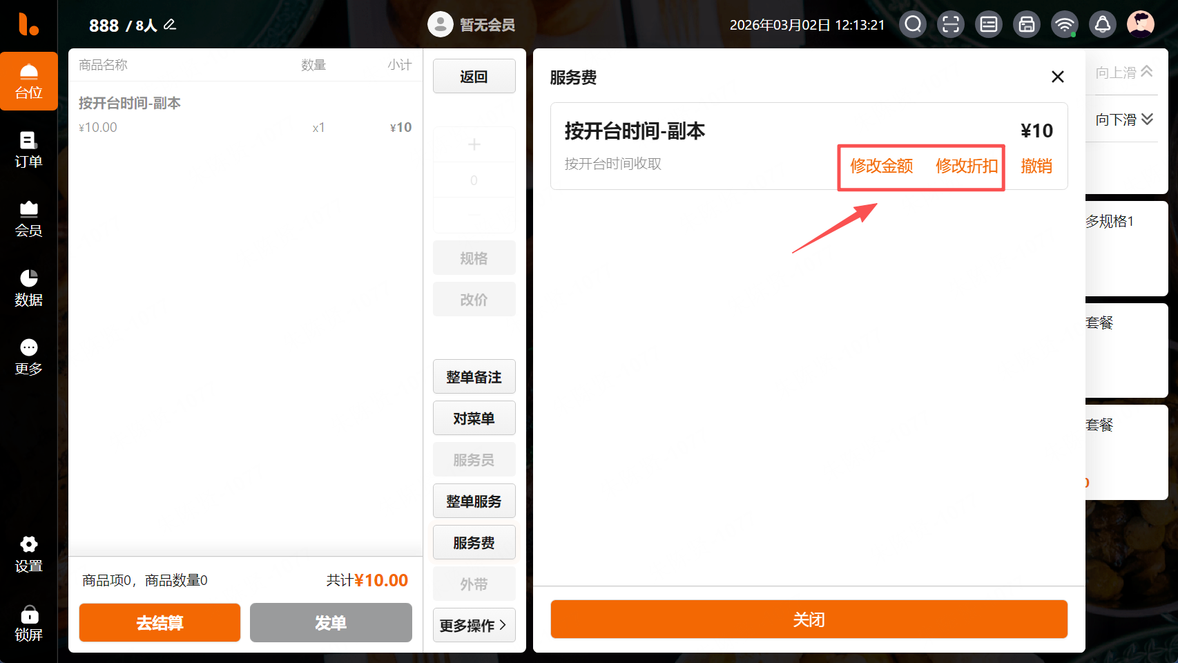 2.【台位POS】按开台时间收取服务费支持修改金额