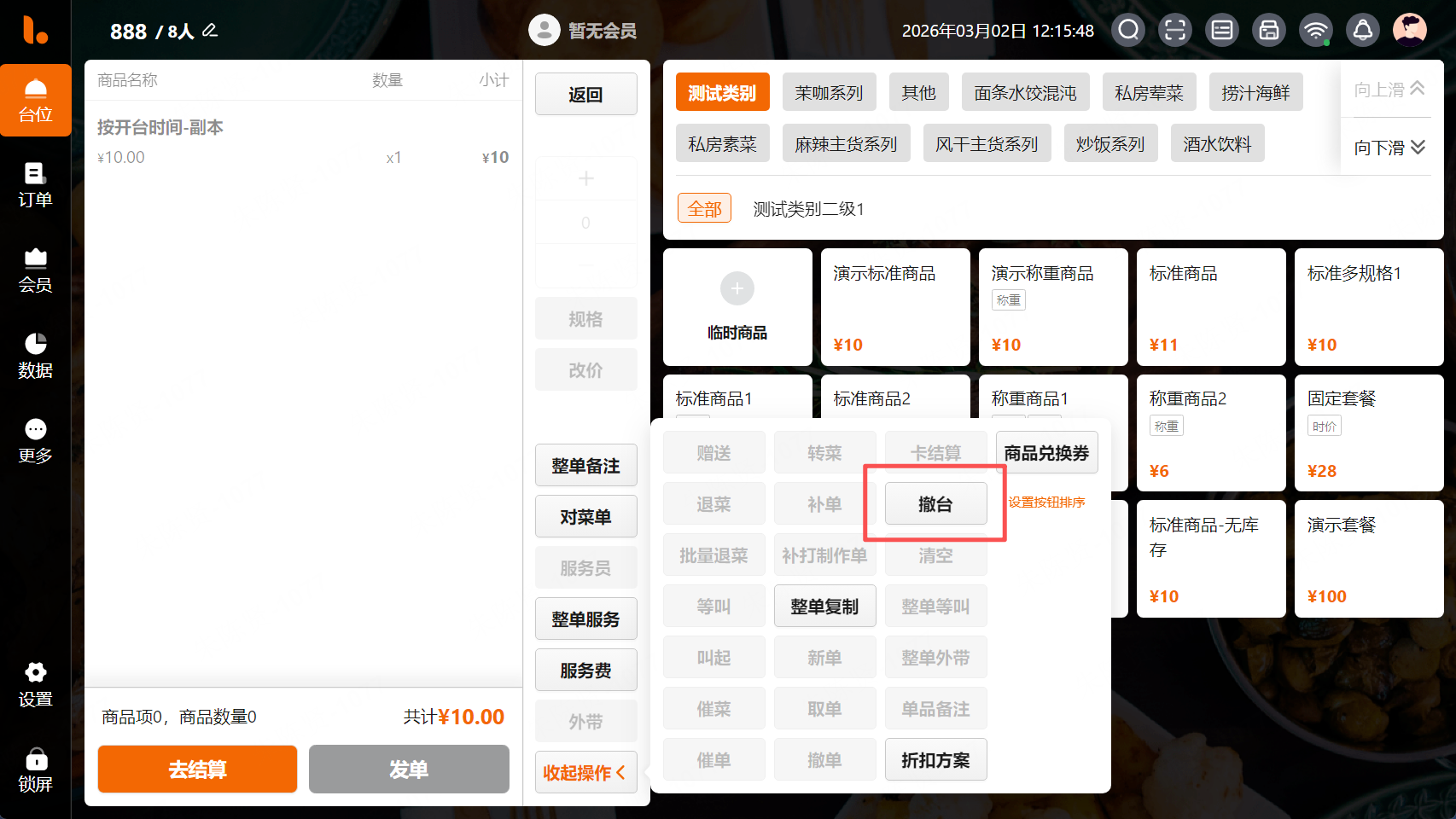 3.【台位POS】点单页面中按钮‘清台’改为‘撤台’