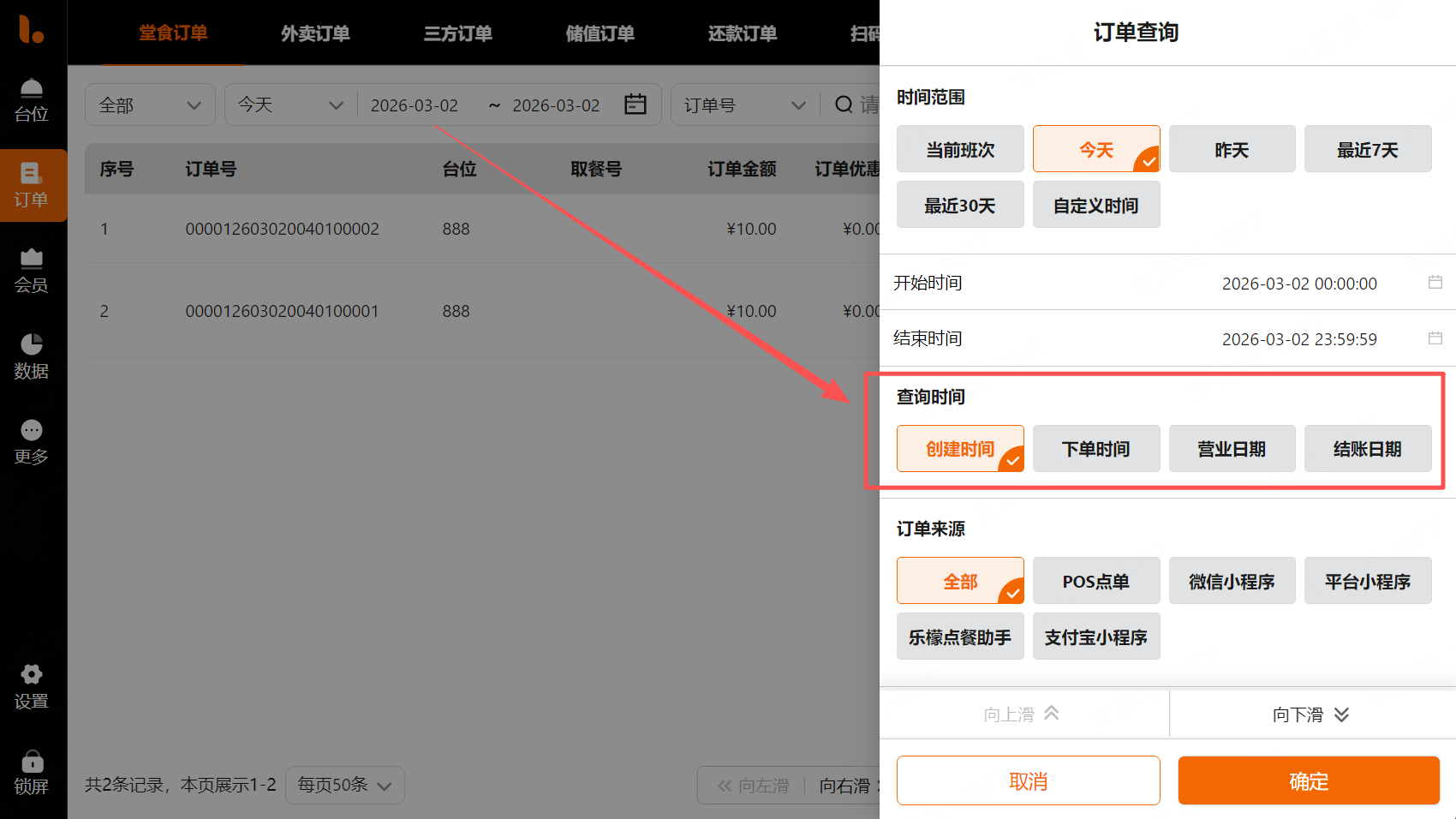 1.【全POS】优化堂食订单查询中按结账时间查询会查询出未结算的单据