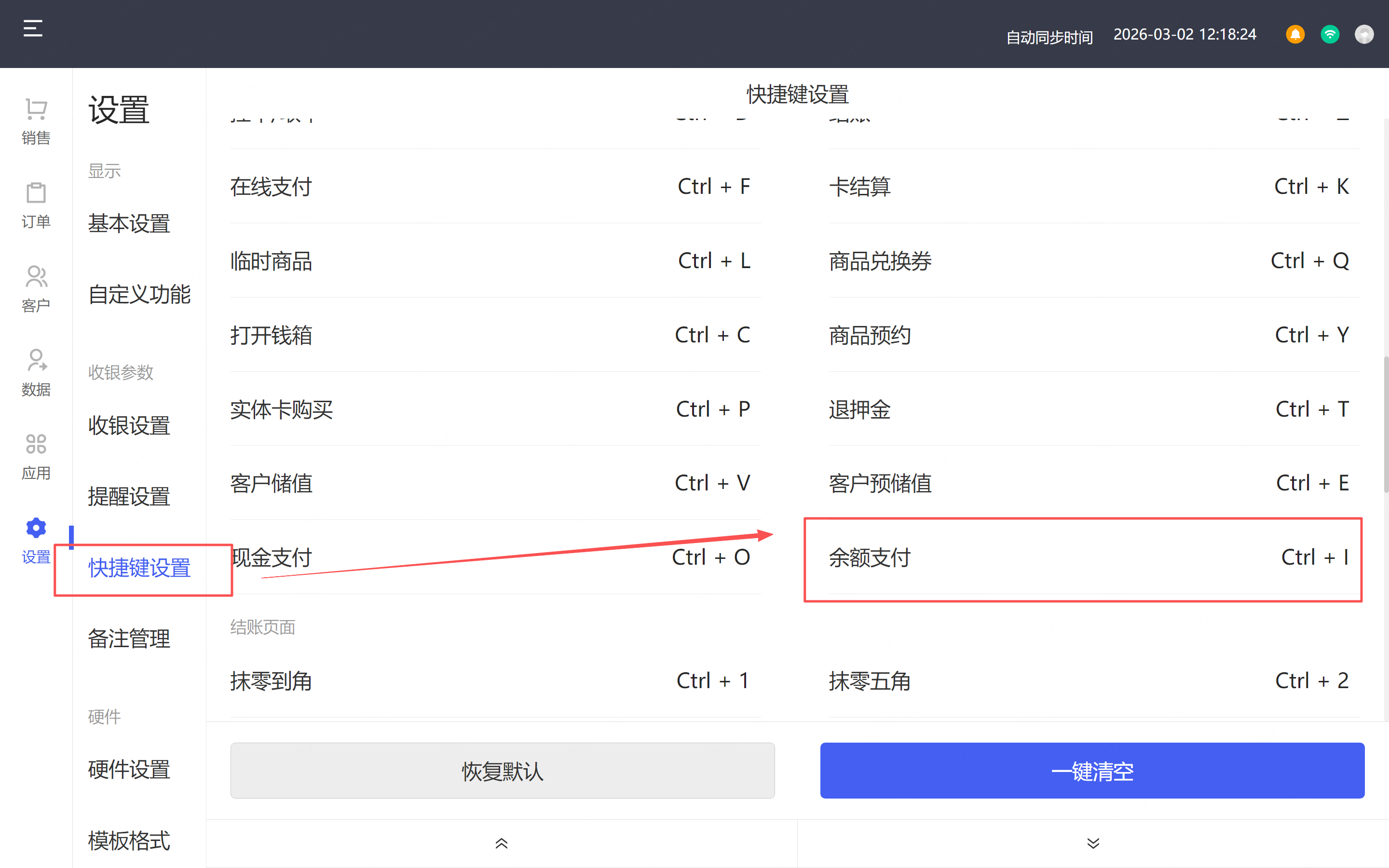 6.【非台位POS】底部按钮快捷键新增余额支付设置