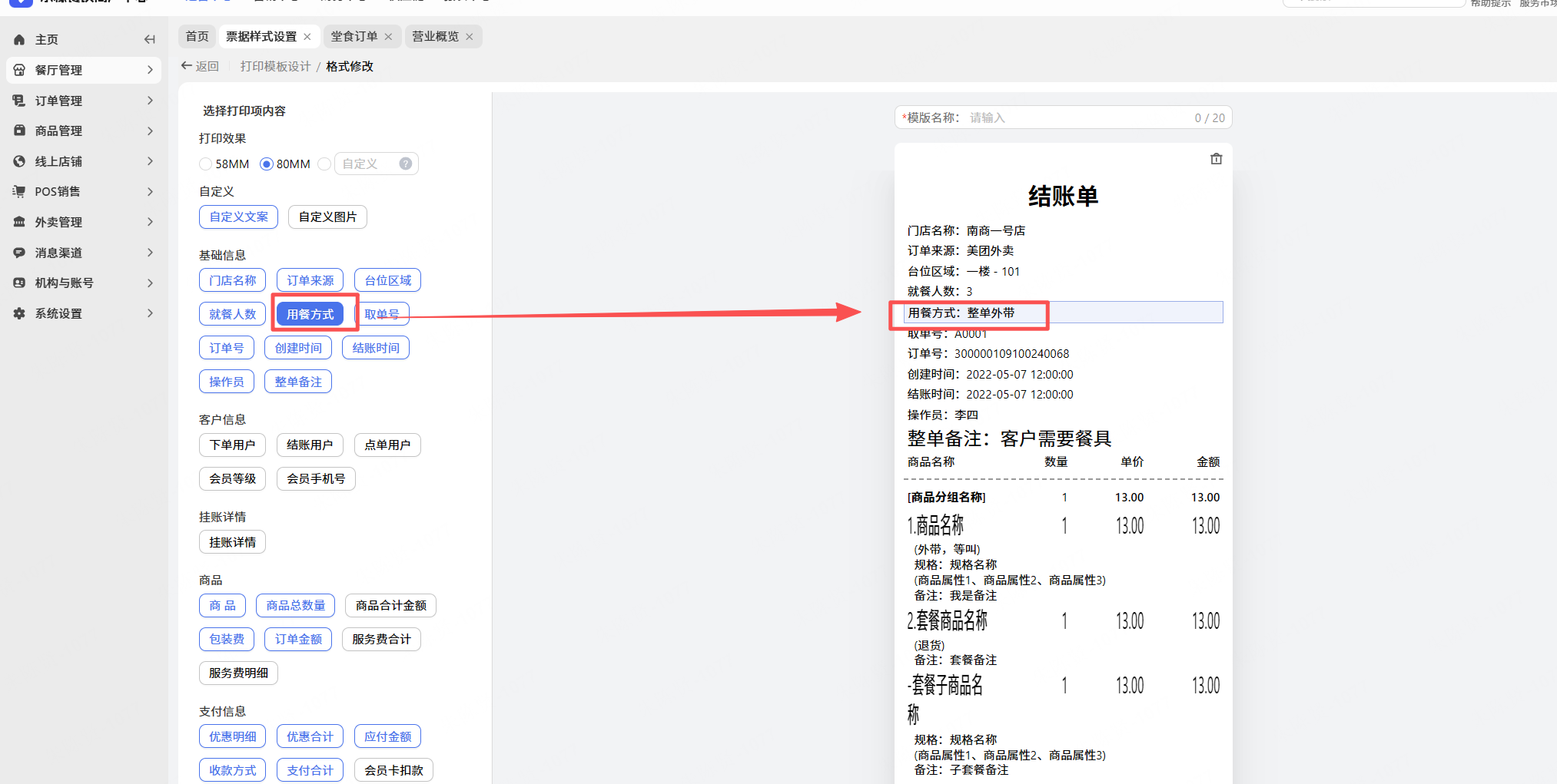 打印格式中字段【用餐方式】一并调整并按最新逻辑应用