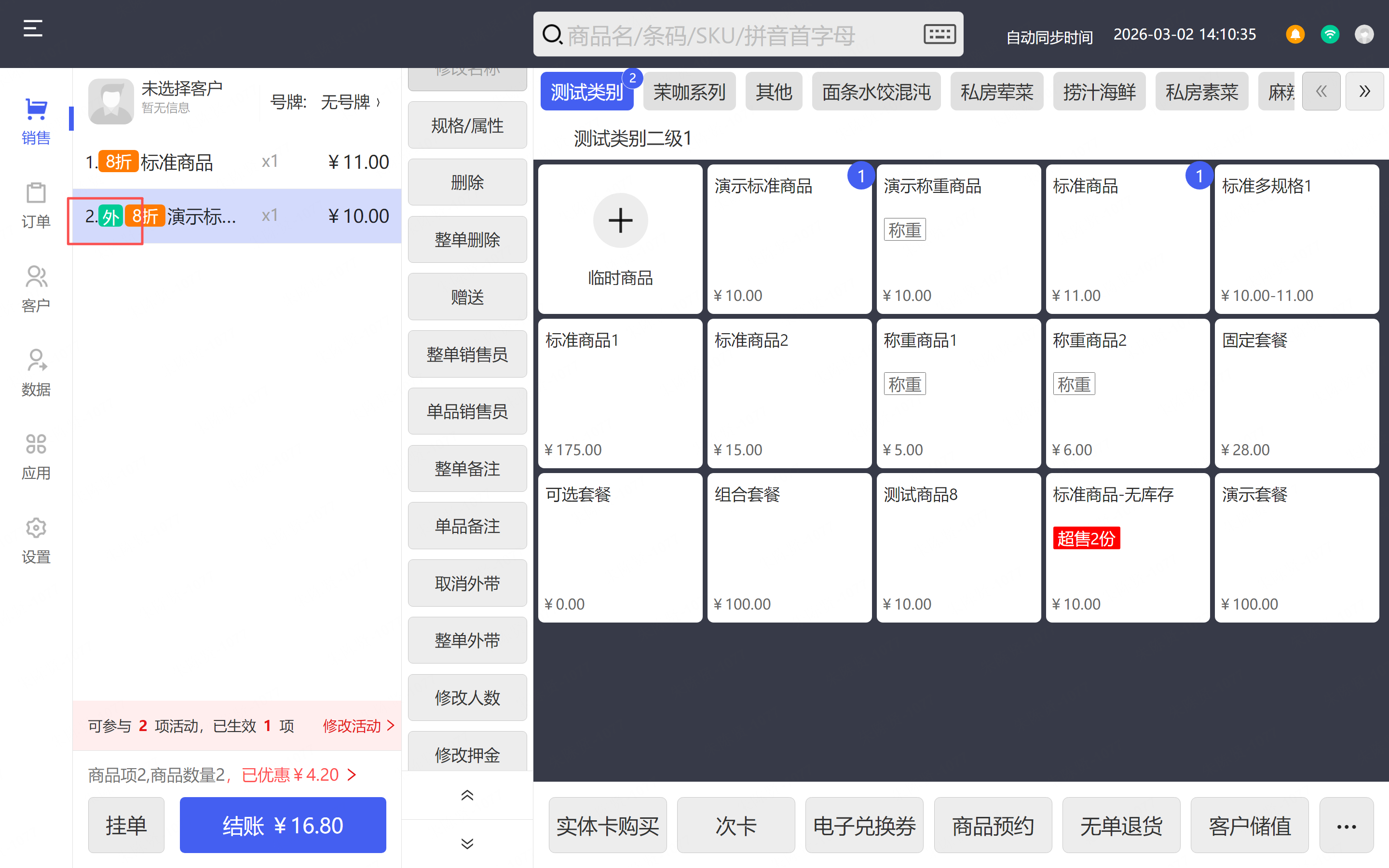 【全POS】订单结算中折扣方案按商品级优惠处理