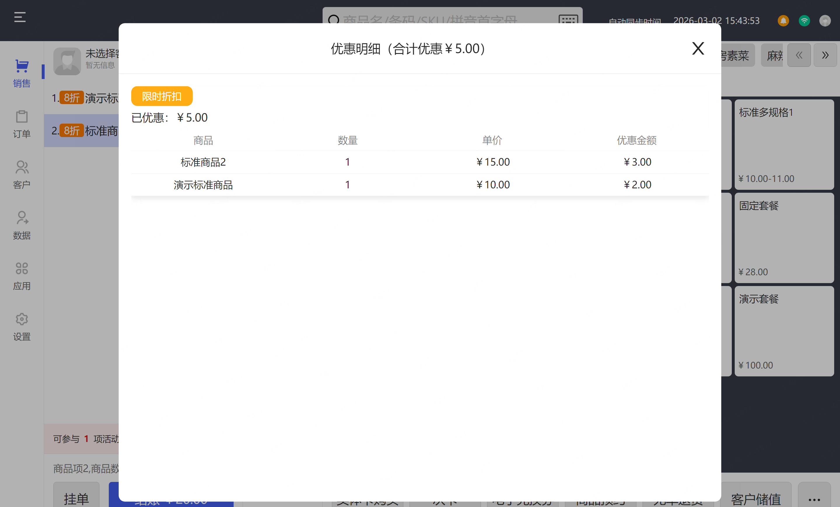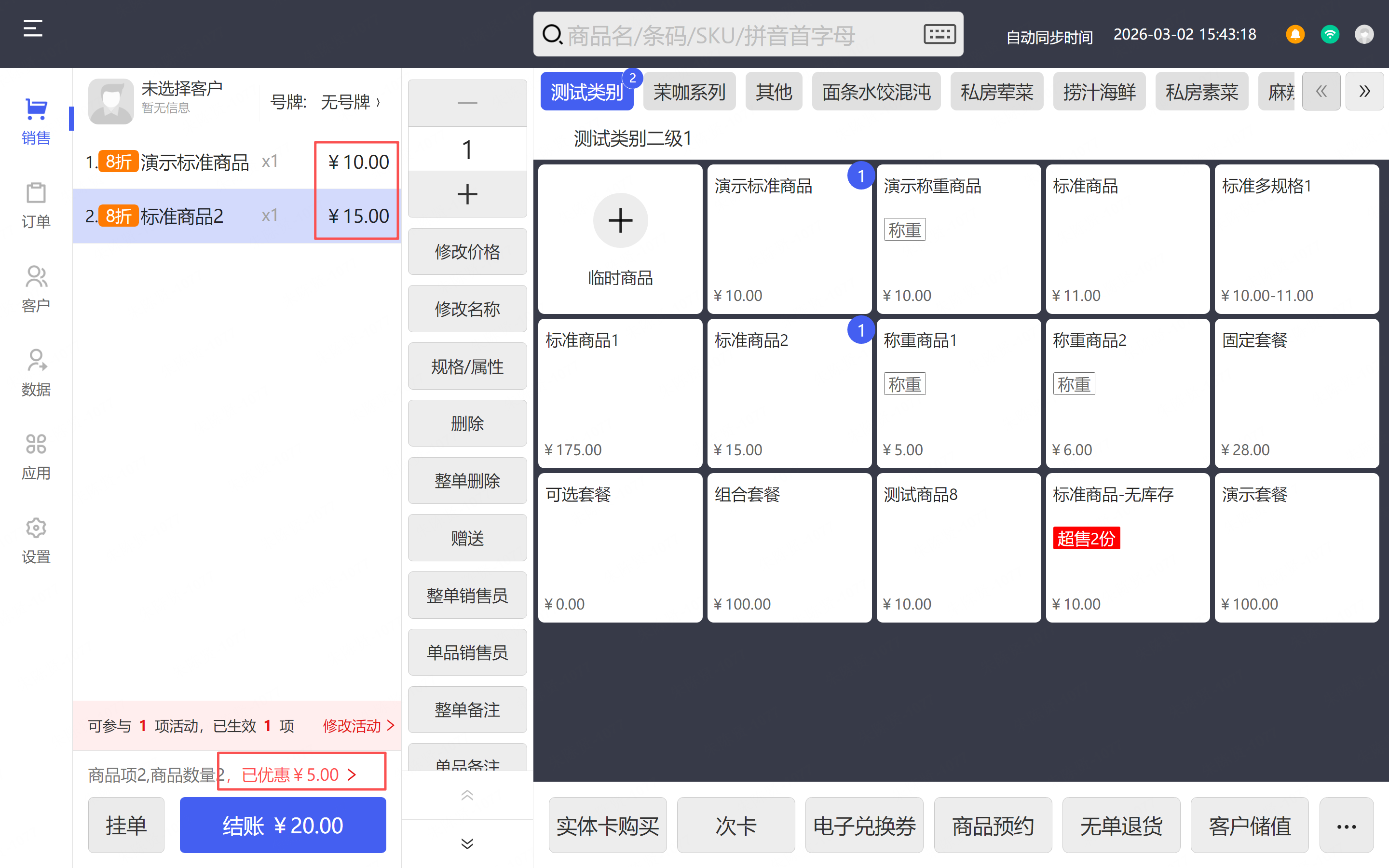 【全POS】订单结算中折扣方案按商品级优惠处理