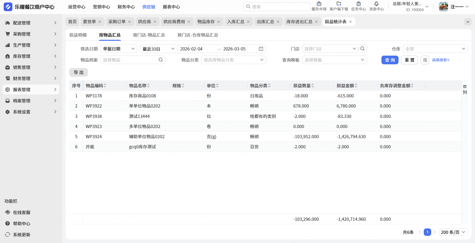 按物品汇总