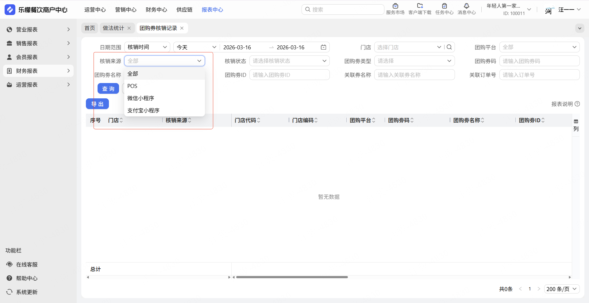 2.网页端团购券核销记录区分订单来源,分为POS、微信小程序、支付宝小程序