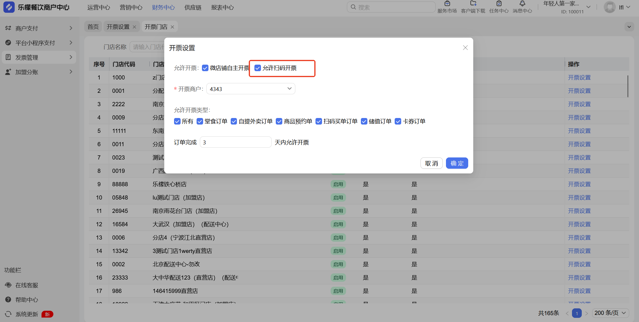 部分商户不支持所有订单都面向客户开票,需要按需支持顾客的指定订单进行开票
