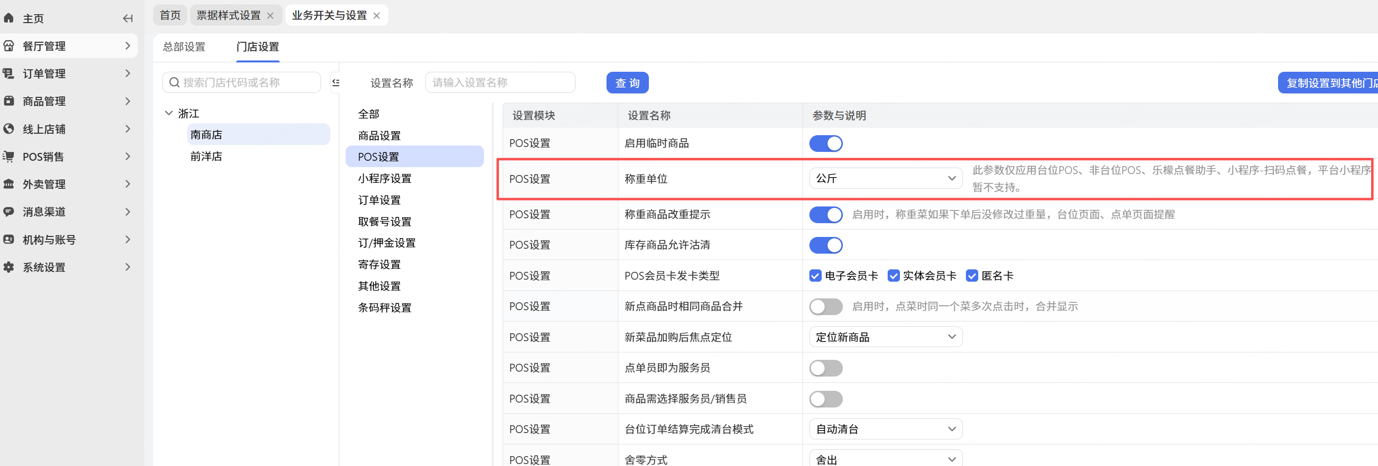 2.【台位POS】套餐明细商品为称重商品的情况下应用参数公斤/斤显示