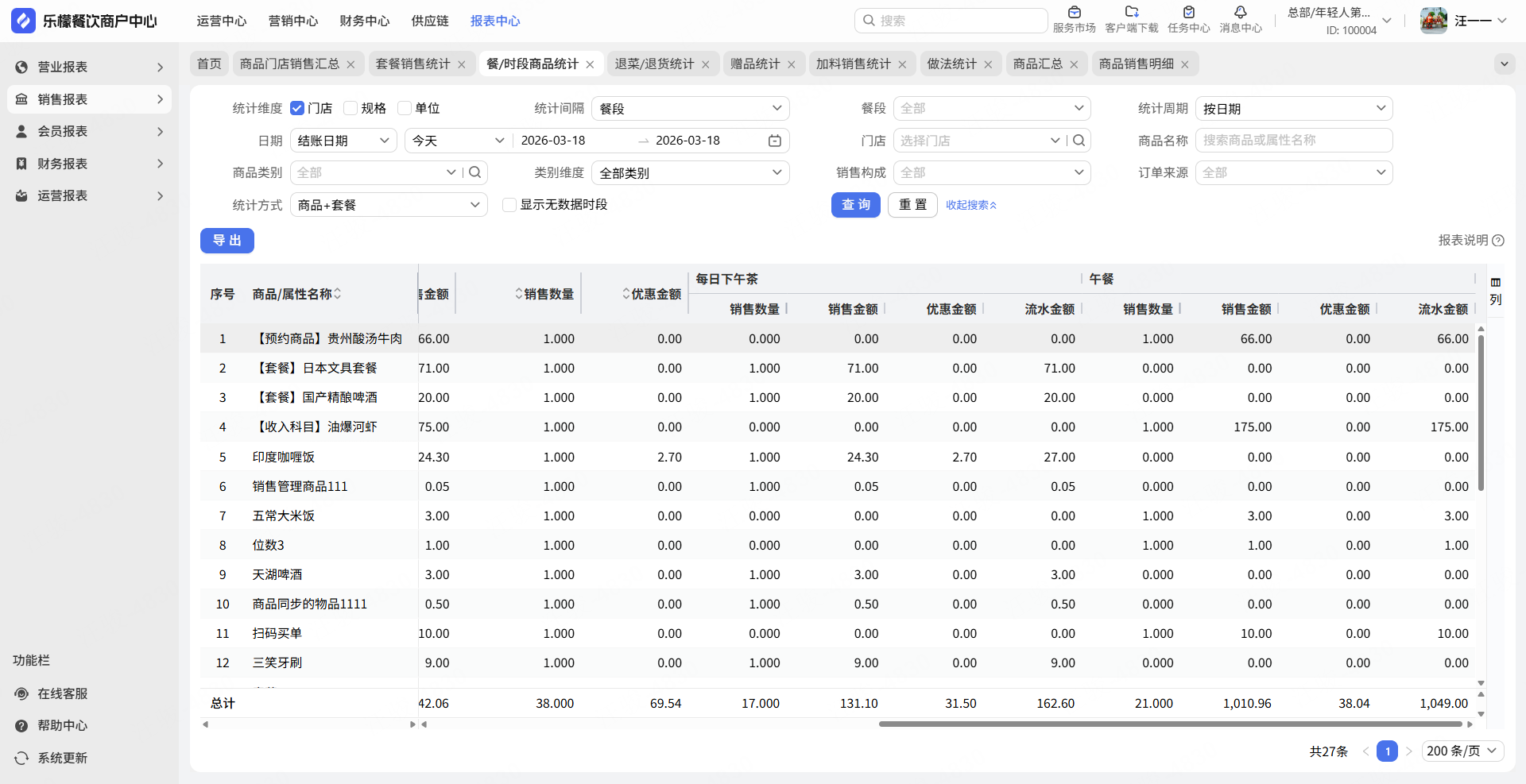 餐时段商品统计