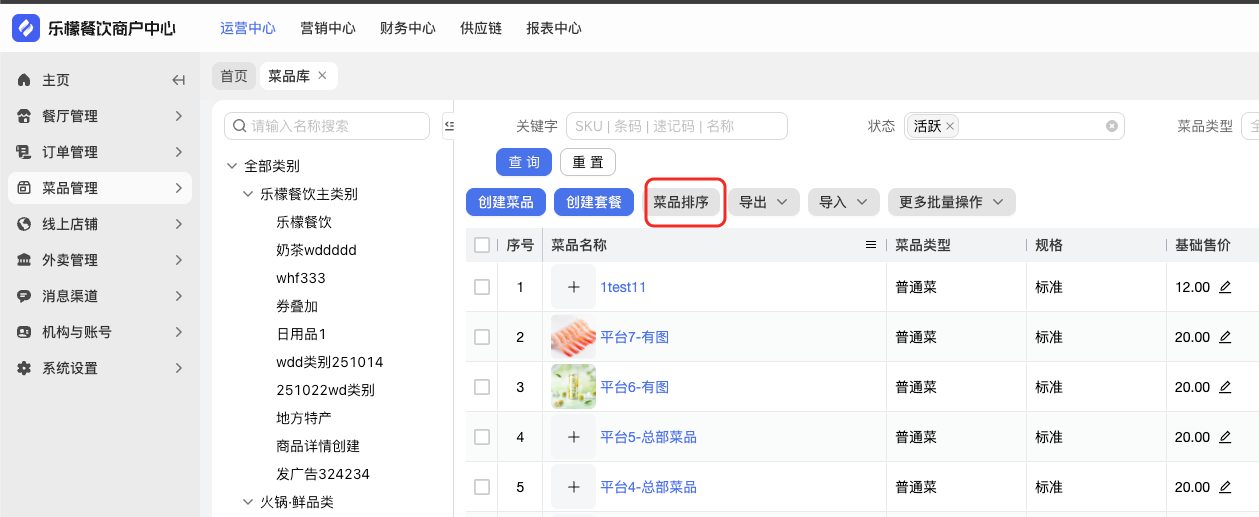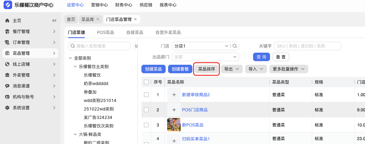 【网页】商品排序里(商品排序和分类排序)调整到菜品库、门店菜品管理和菜品分类、门店菜品分类