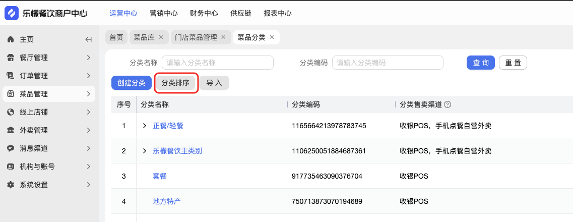 原商品排序-门店排序(一级类别排序和二级类别排序),功能移到门店视角下,门店菜品分类-分类排序。