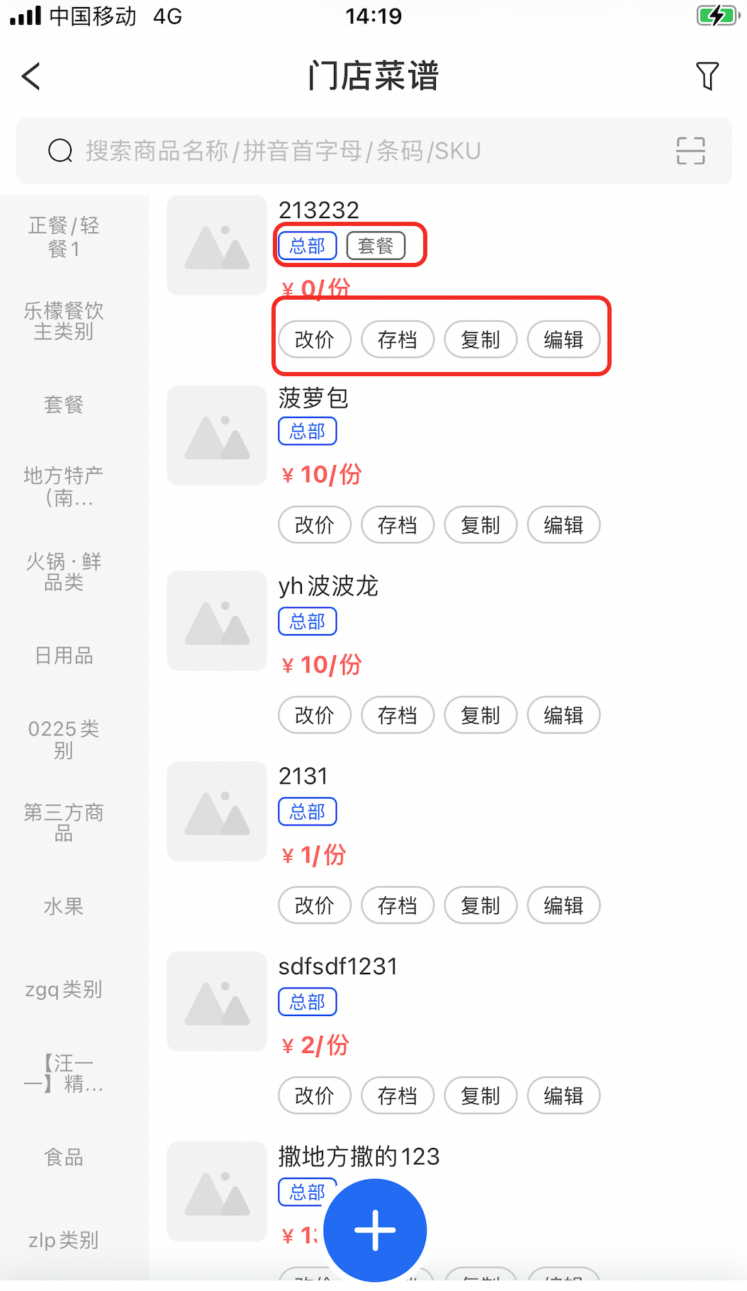 增加列表页菜品操作:改价、存档/取消存档、复制、编辑;