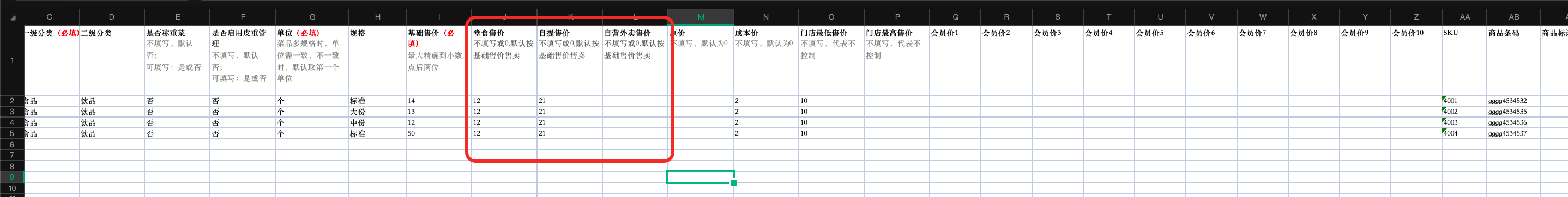 导入模板文件原名称:商品模板,改为:菜品导入通用模板V0330。