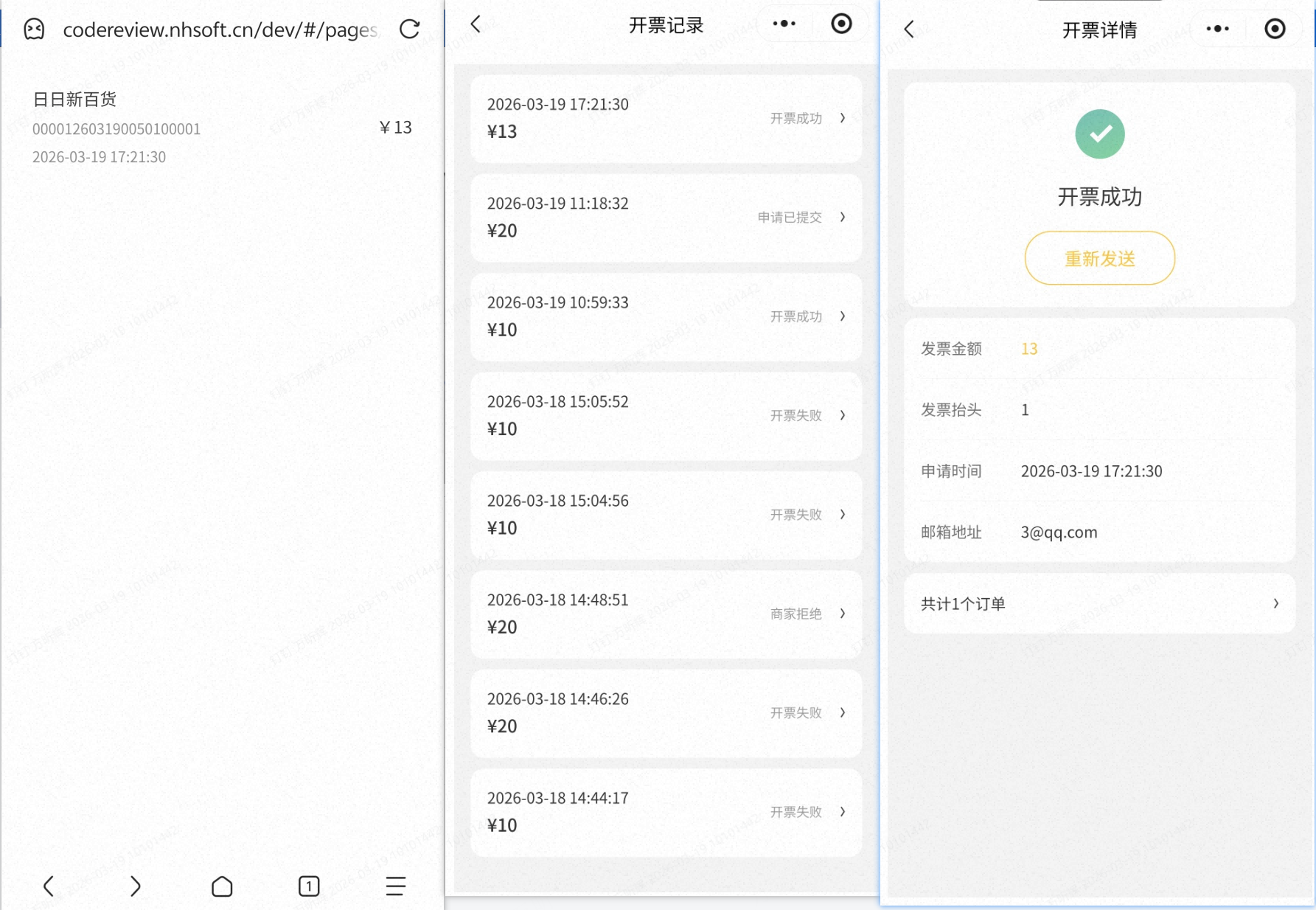 若订单存在会员,那么H5页面开发票的记录,将展示在订单对应的会员的开票记录中