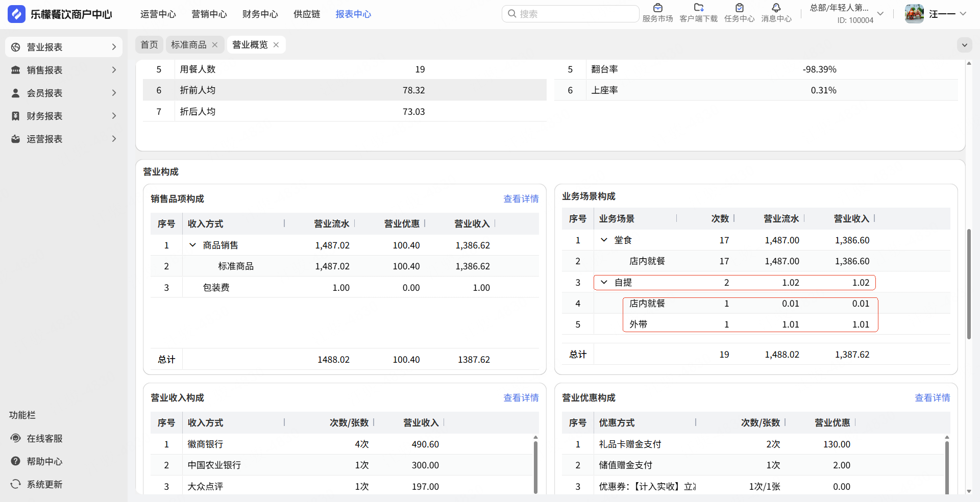 调整后,自提数据等于二级场景店内就餐和外带数据之和。