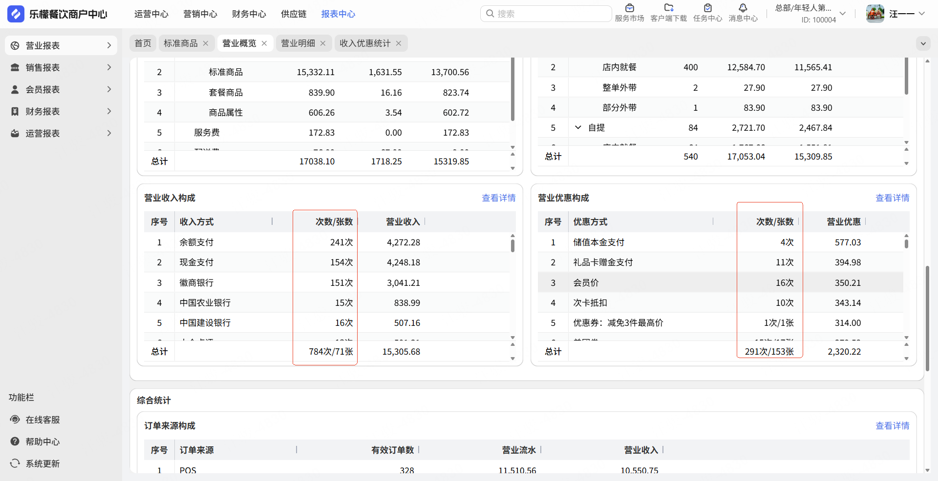针对结账方式中的支付方式全部计入实收,以及优惠方式全部计入优惠等情况,次数统计规则调整。