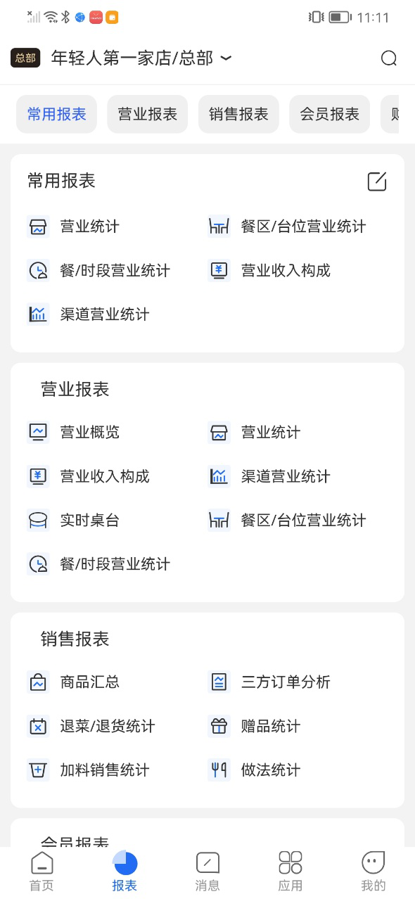 目前餐饮管家APP首页可设置常用报表,将于下版本迁移至报表模块