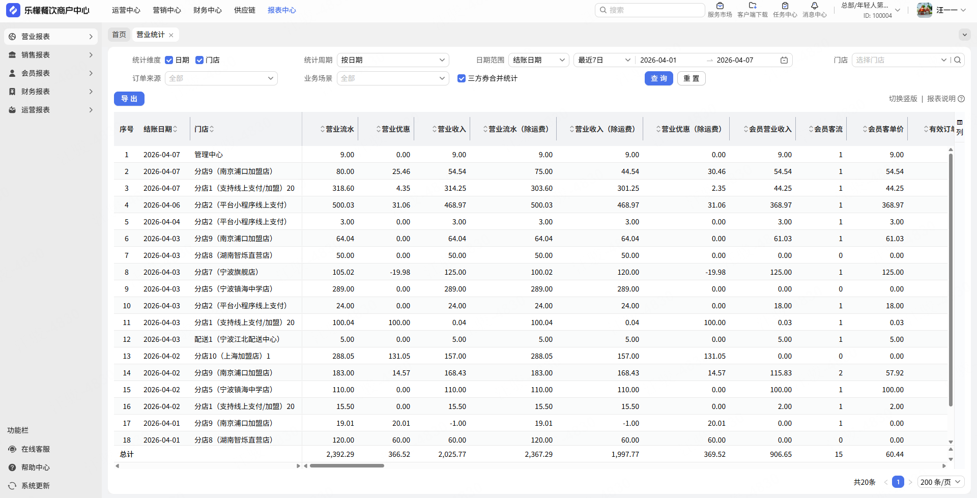 营业统计