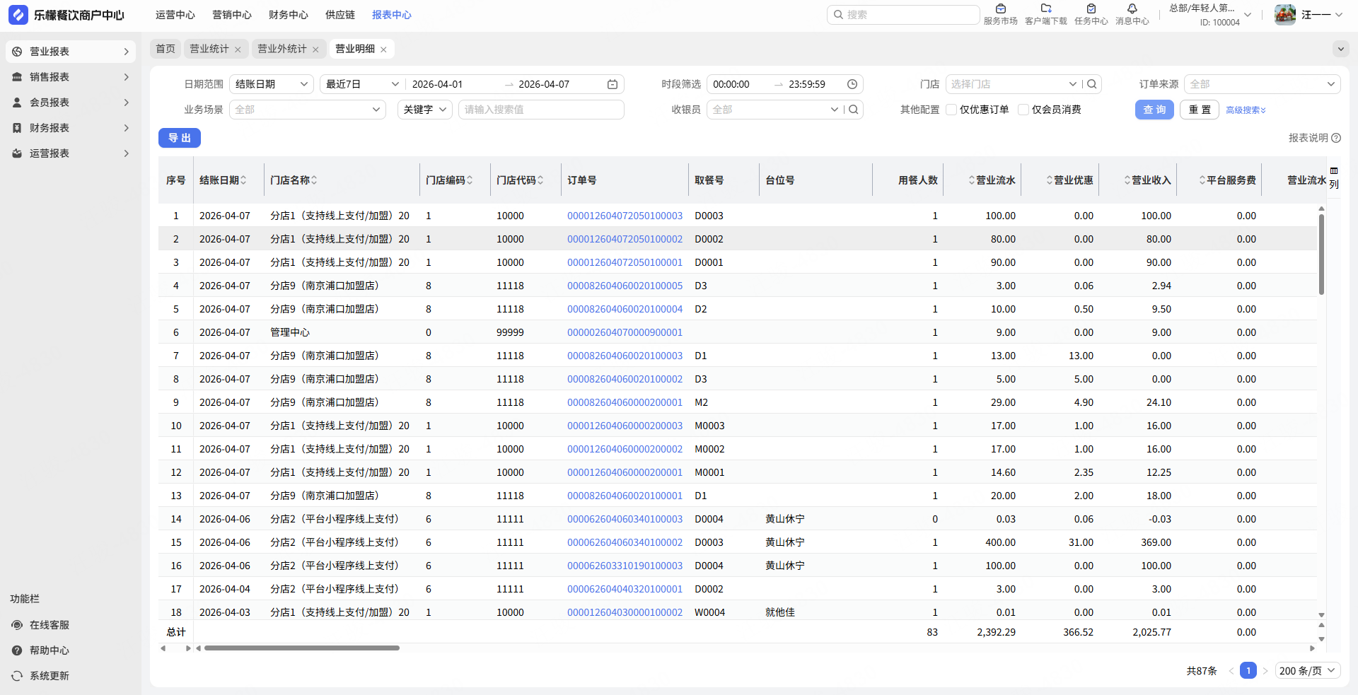 营业明细